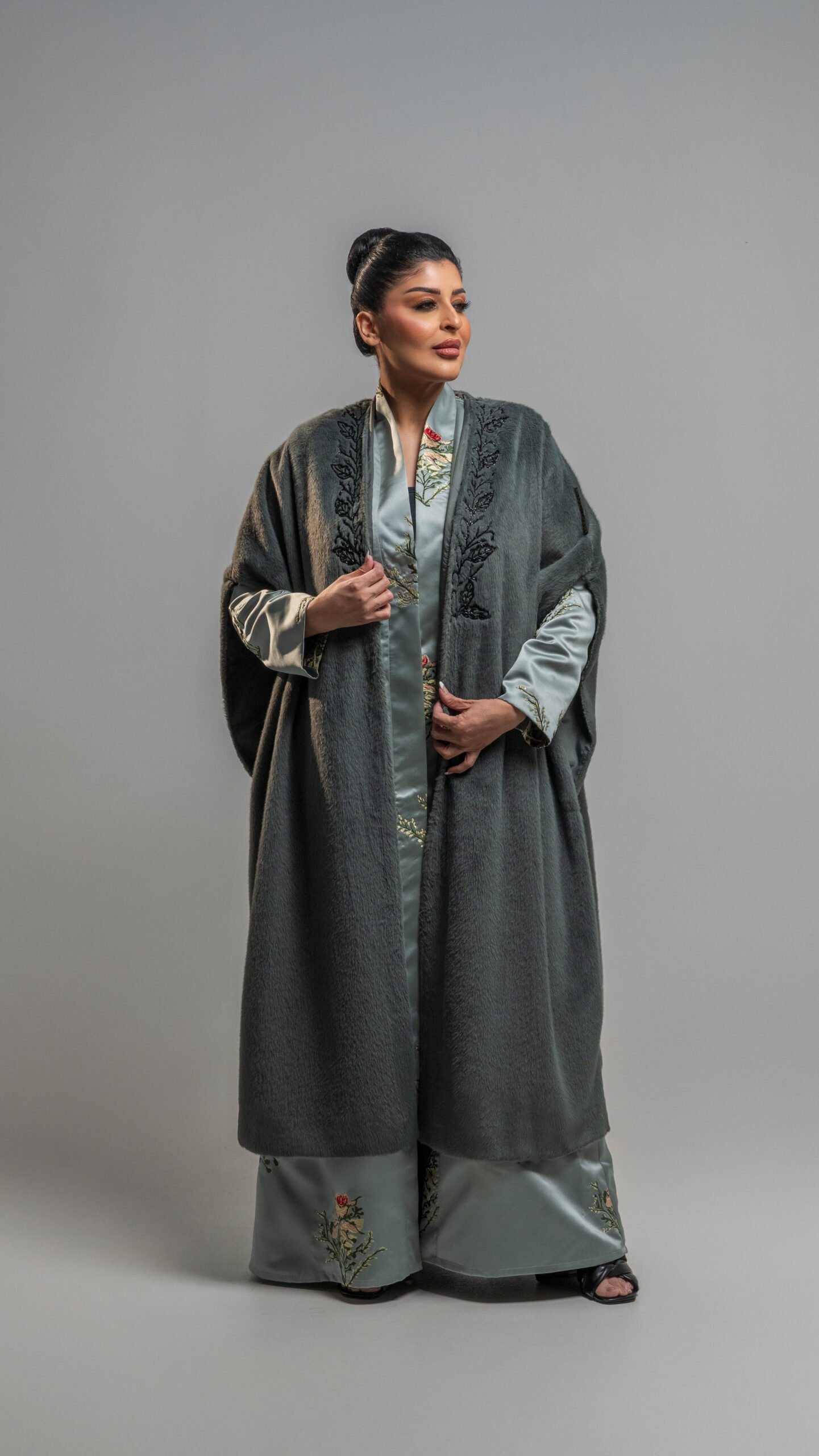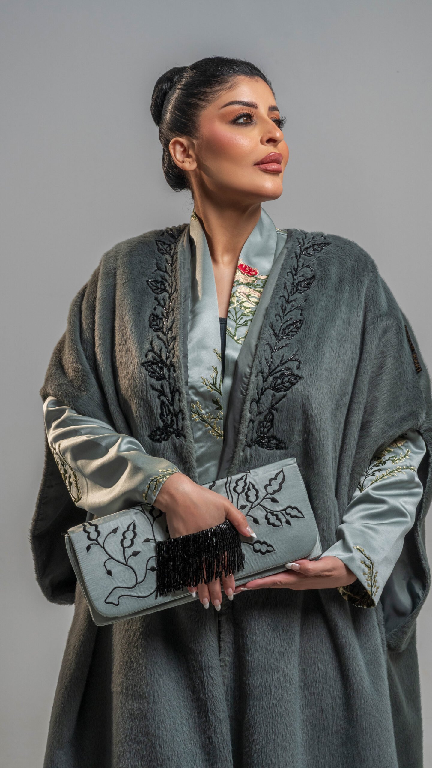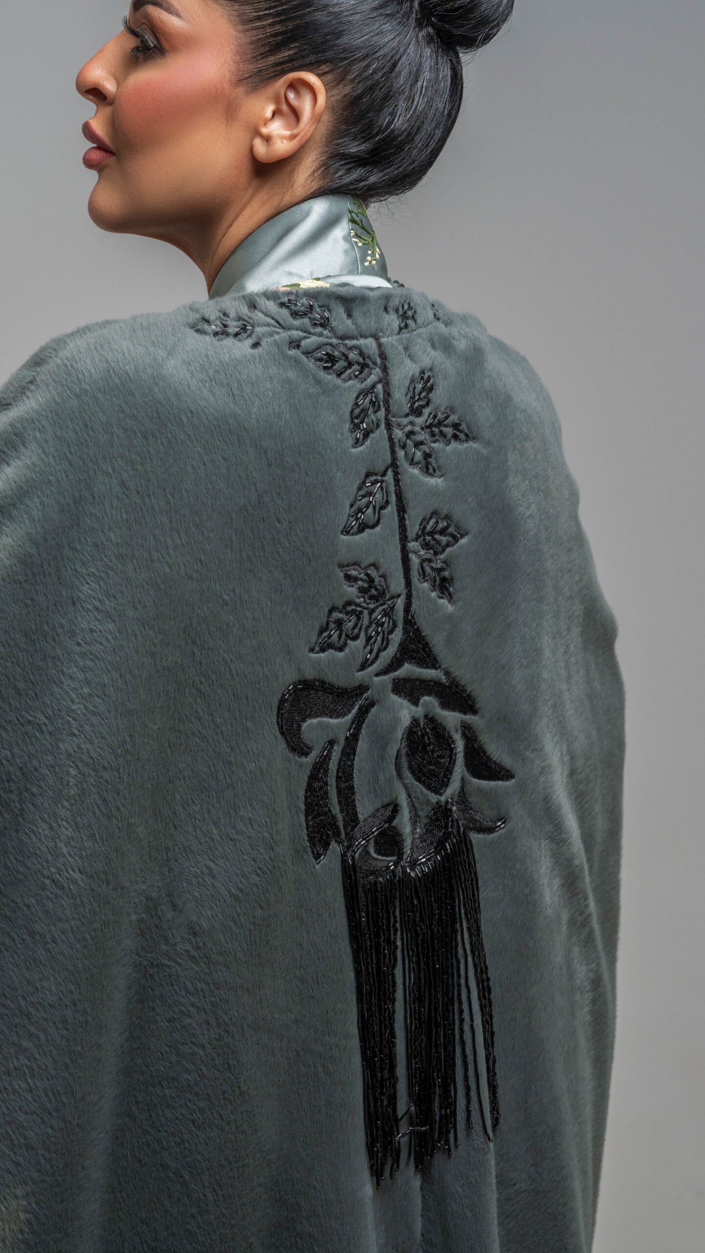من القماش الفرو مطعم بالخرز الاسود