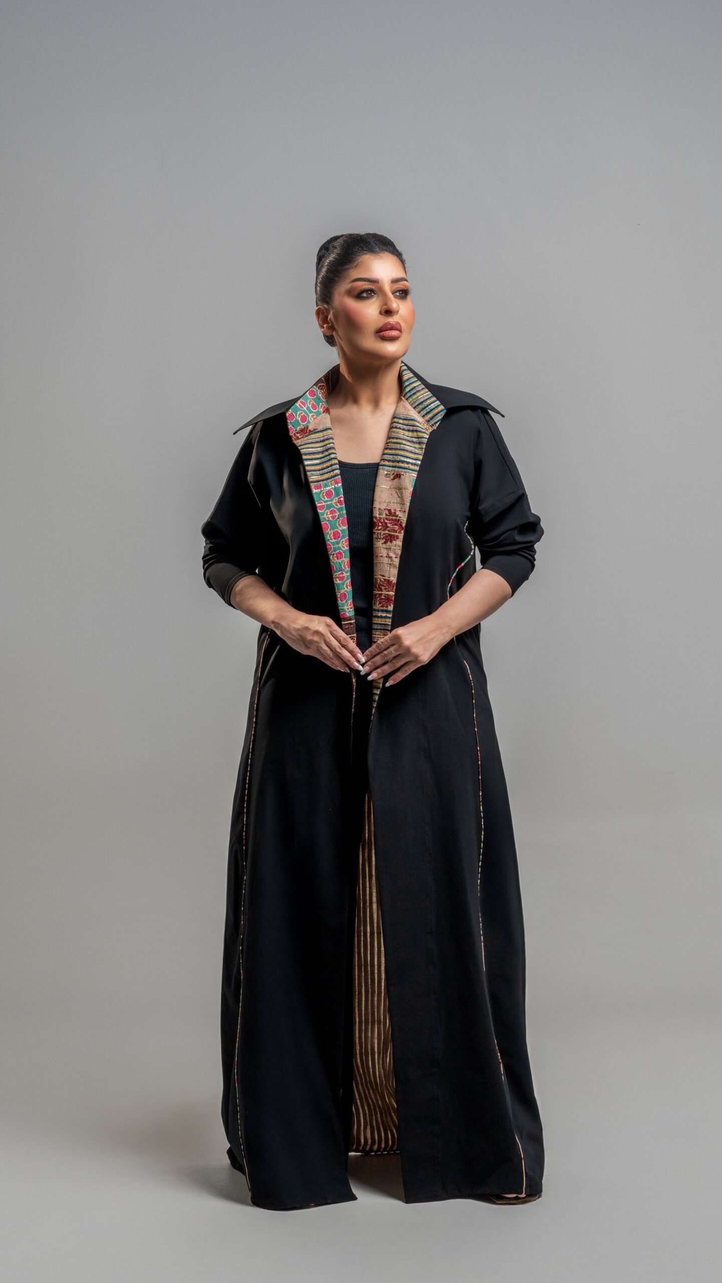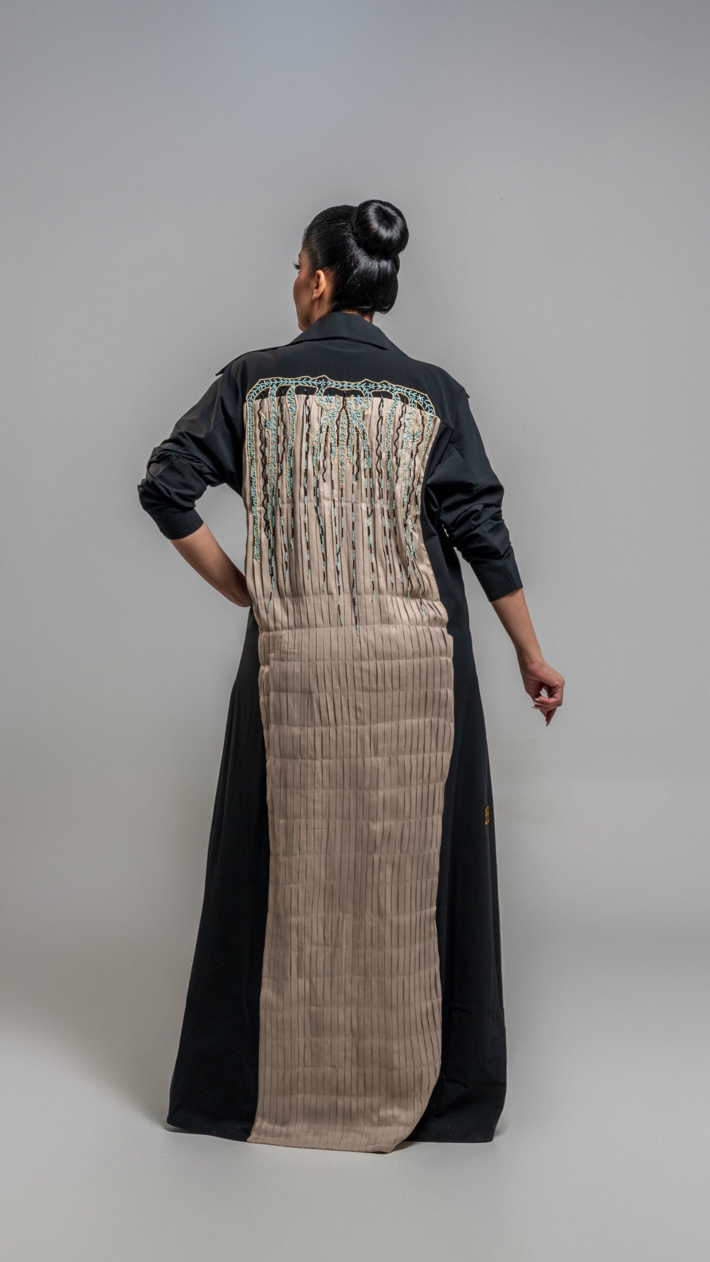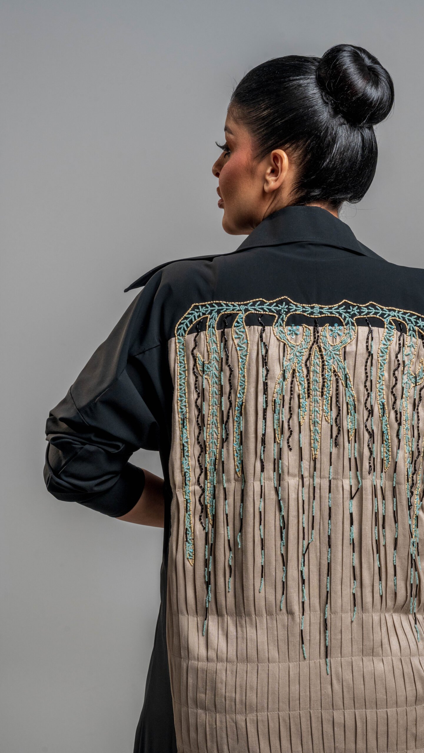 من القماش اللينن مطعم بالخرز الملون من الامام والخلف