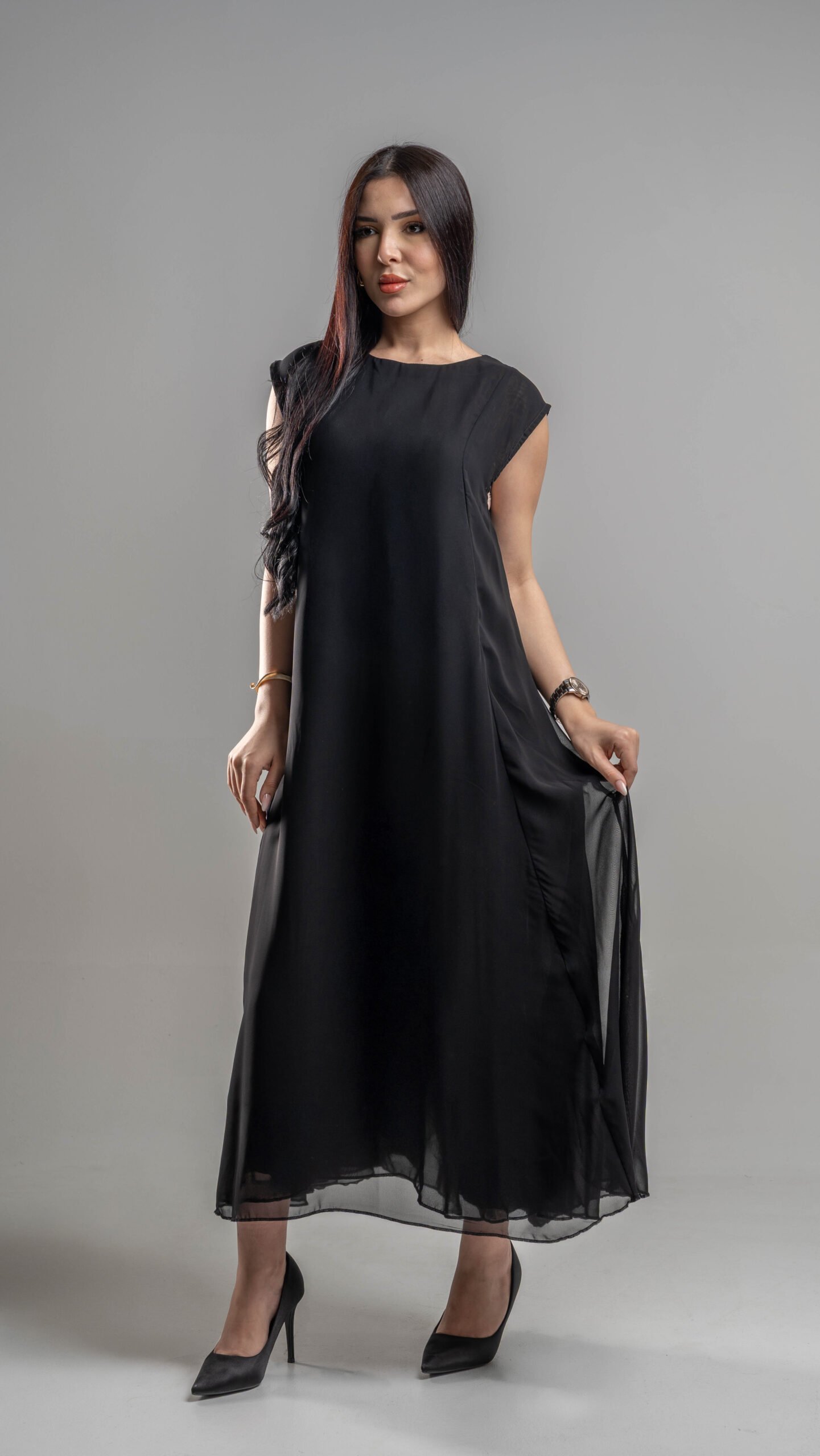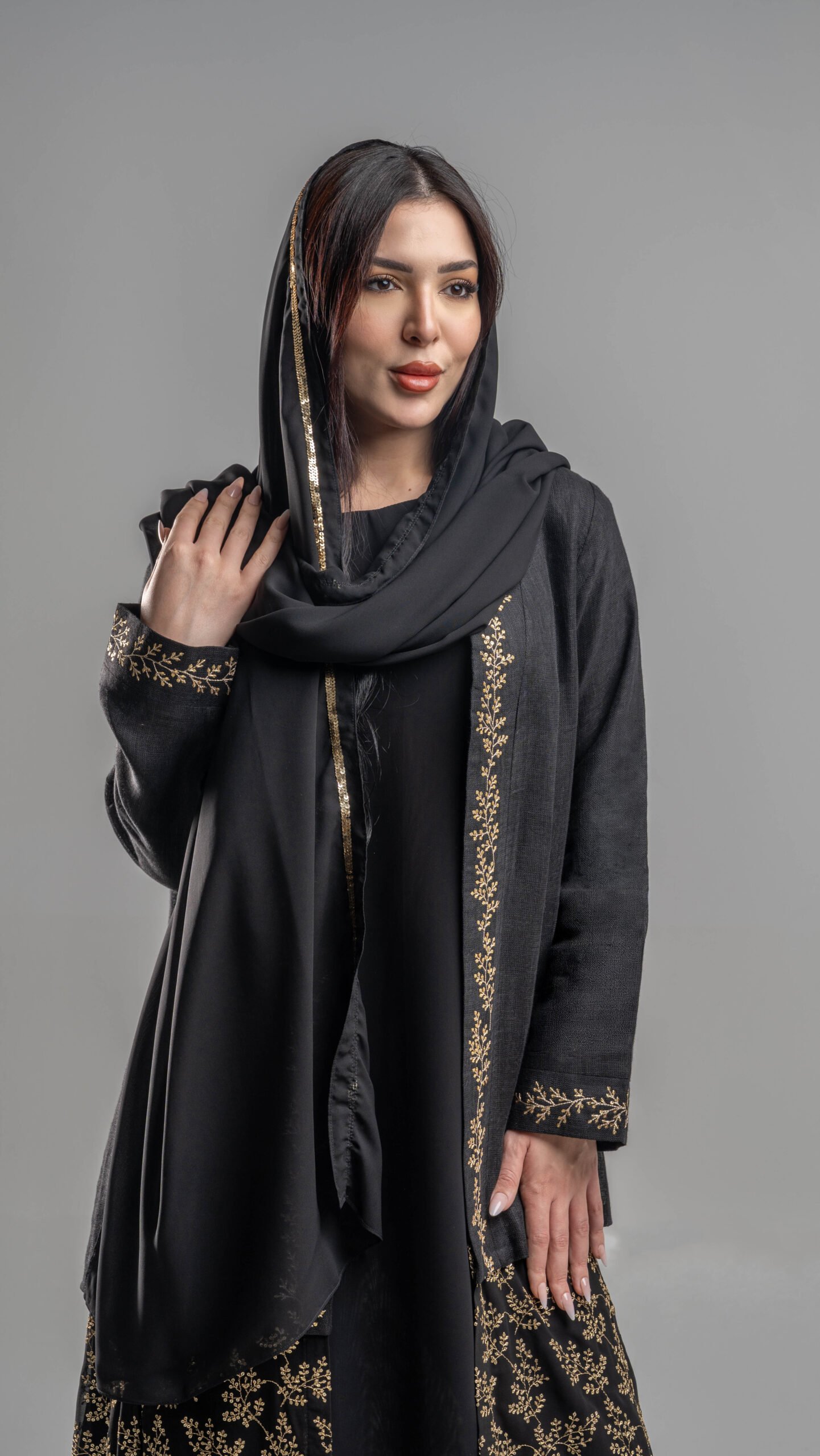 عباية فاخرة باللون الأسود بتصميم أنيق وقصة راقية،